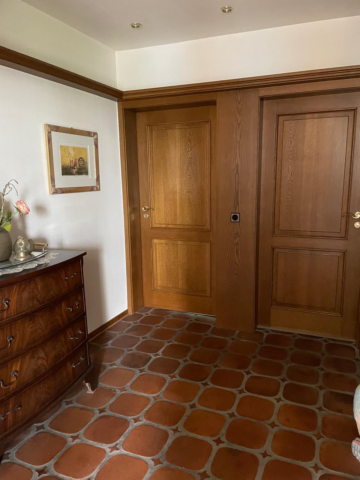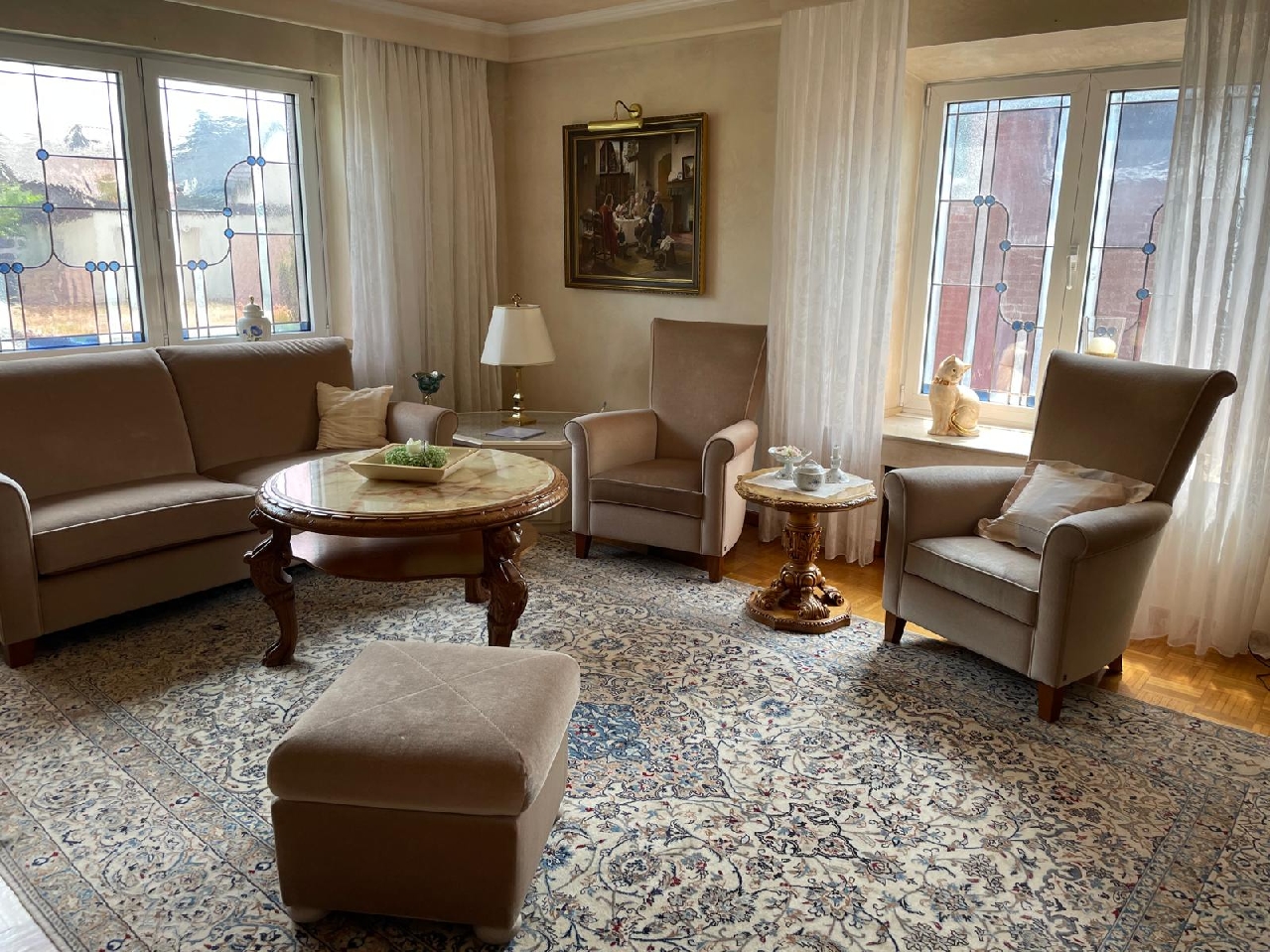 1972 wurde das Haus in massiver Bauweise errichtet. Fenster mit hochwertiger Bleiverglasung, elektrischen Rollläden, Fußbodenheizung runden das Angebot ab.