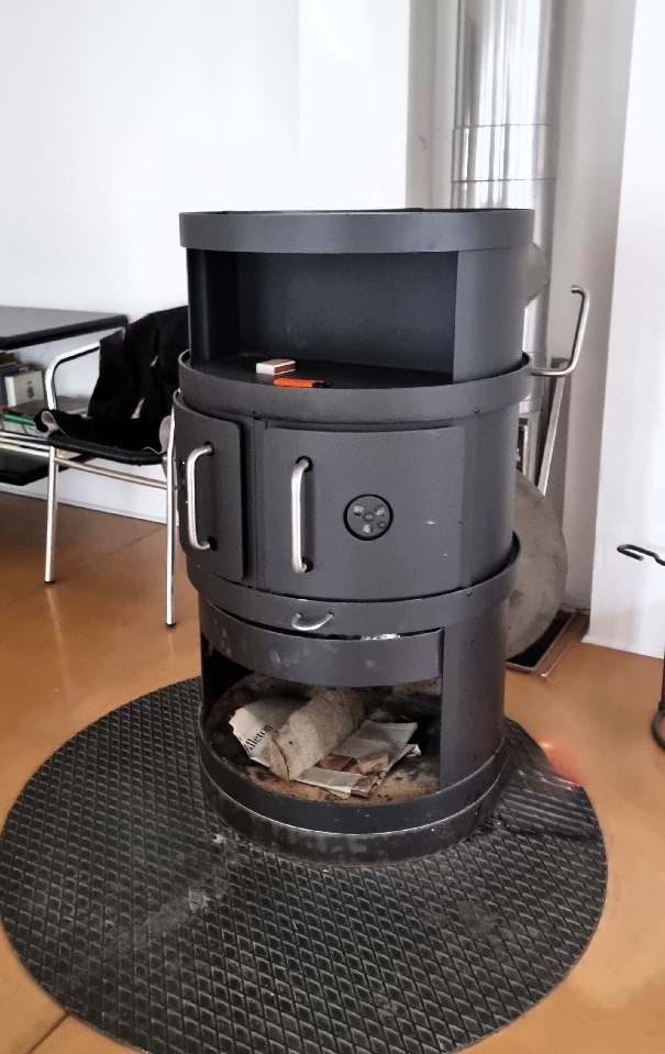 Wohnklima: Großer, runder, skandinavischer Kaminofen.