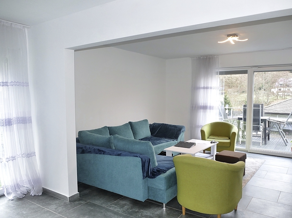 Ihr lichtdurchflutetes Wohnzimmer ermöglicht Ihnen den Zugang zur Terrasse und auf den Balkon.