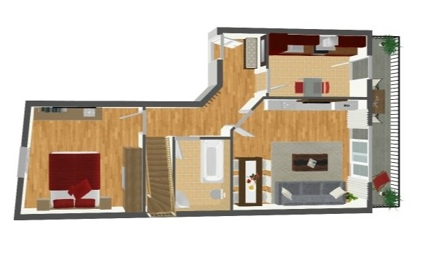 Eine stilvolle Holztreppe führt Sie in die obere Etage. Dieser vielseitige Raum passt sich ganz Ihren Bedürfnissen an ob als inspirierendes Homeoffice, kreatives Kinderzimmer oder einladendes Gästezimmer.