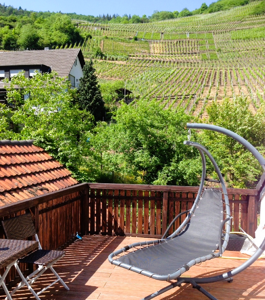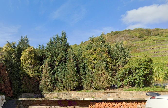 Direkt an den flachen Gartenteil schließt sich die charakteristische Hanglage an, die das Ahrtal so besonders macht. Dieser Teil des Grundstücks ist prädestiniert für den Weinanbau. Der Boden, typischerweise eine Mischung aus Schiefer und Grauwacke, bietet in Kombination mit der optimalen Sonneneinstrahlung an den nach Süden oder Südwesten ausgerichteten Hängen exzellente Bedingungen für den Anbau von Spätburgunder (Pinot Noir), der Königin der Rebsorten an der Ahr. Auch andere regionale Spezialitäten wie der Frühburgunder gedeihen hier prächtig. Die Anlage von Weinterrassen würde nicht nur die Bewirtschaftung erleichtern, sondern auch ein malerisches Bild ergeben und die lange Weinbautradition der Region auf dem eigenen Grundstück fortführen.